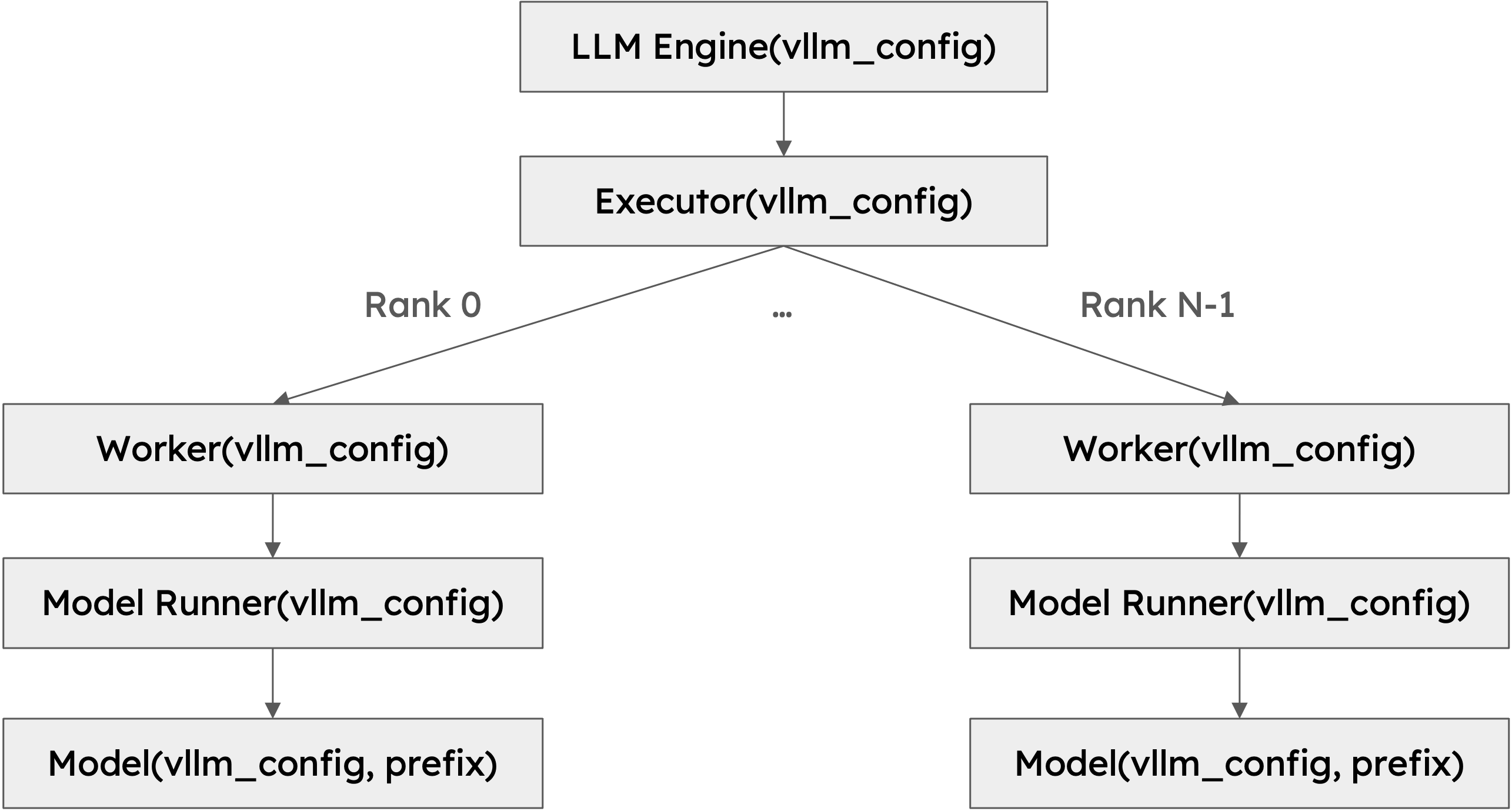 這種設計的一個缺點是,很難為 vLLM 中的單個元件編寫單元測試,因為每個元件都需要透過一個完整的配置物件進行初始化。我們透過提供一個預設初始化函式來解決這個問題,該函式建立一個所有欄位都設定為 None