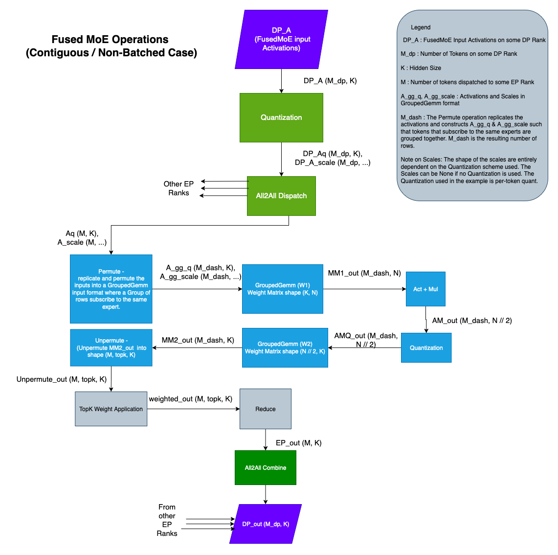 FusedMoE 操作通常由多個操作組成,在連續和批次變體中都是如此,如下面的圖表所示。