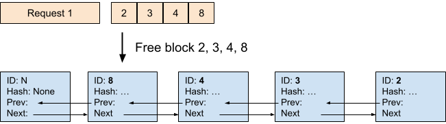 - 透過彈出空閒佇列的頭部來分配新塊。如果頭部塊是快取塊,這還將“淘汰”該塊,以便其他請求從現在開始無法重用它。